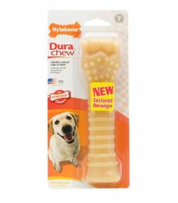 Made with tough, durable nylon, the Power Chew DuraChew Original Chew Toy was designed for your powerful chewer. It provides long-lasting enjoyment, satisfies your dog's natural urge to chew, and encourages positive chewing habits. Plus, the bristles raised during chewing promote clean teeth and help control plaque and tartar buildup. Go ahead and give your dog a Nylabone!