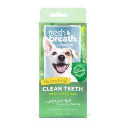 Smelly pet breath is not just bad for our noses, it is bad for your pals health, too. It means there are germs in your pals mouth that lead to periodontal disease, cause gingivitis, and build up plaque and tartar. That is why vets recommend TropiClean Fresh Breath No Brushing Clean Teeth Dog Dental Gel. It cleans teeth, freshens breath, soothes sore gums, and is safe for both cats and dogs!